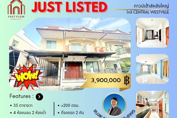 Large townhouse for sale in Ramanyavill Suan Phak 32, near Central Westville, Bang Kruai-Chong Thanon Road. Added garage, kitchen, and bedroom. Excell...