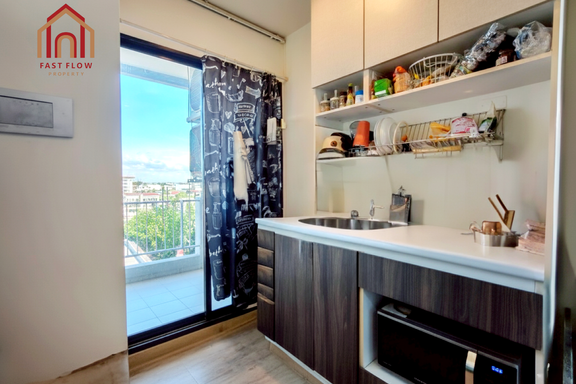 For sale, 7th floor, ready to move in, Johnny Tower Condo, 35.55 sq m, located on Pracha Uthit Road, near MRT Huai Khwang. Johnny Tower MAY.
