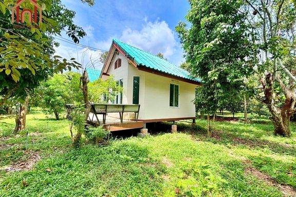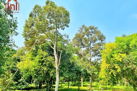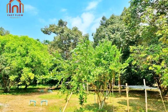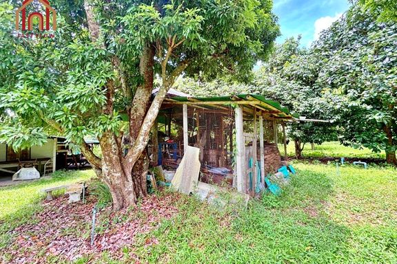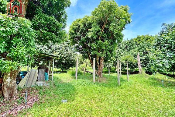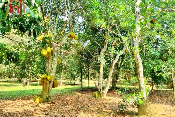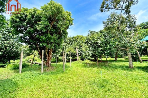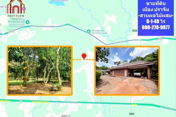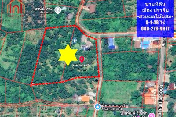 Land for sale, Prachinburi Province, 8 rai, 1 ngan, 48 square wah, with mixed fruit orchard, pond, and buildings, solar cell system installed, 2 entra...