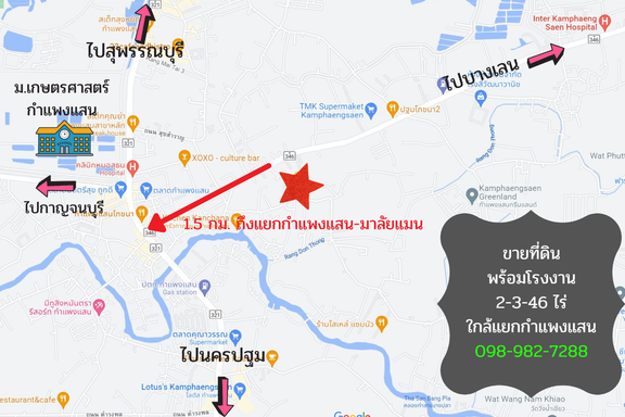 Land for sale with factory, cold storage, Kamphaeng Saen, Nakhon Pathom, Kamphaeng Saen - Bang Len Road, Malai Man Road, almost 3 rai, near Kasetsart...