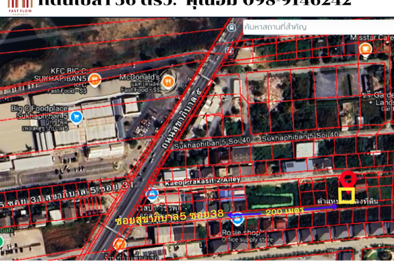 For sale, vacant land 56 square wah, 220 meters from Sukhapiban 5 Road, approximately 15 meters wide, approximately 14.82 meters deep Interested, cont...