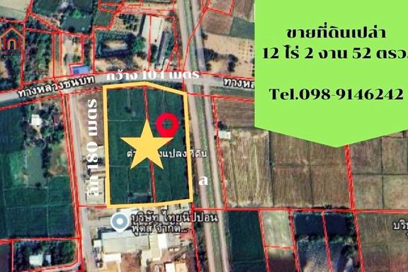 Land for sale 12 rai 252 square wah, Phitsanulok, near the city, on 2 sides of the road, 104 meters wide, 180 meters deep IM Interested, contact Rany...