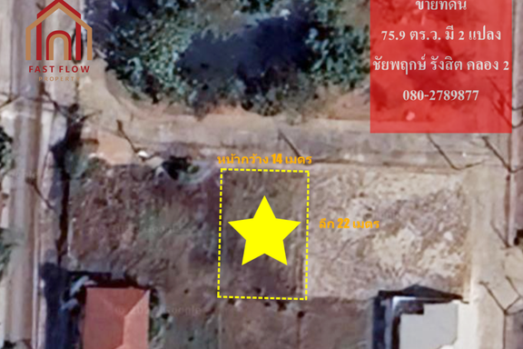 Cheap sale, vacant land, 75.9 sq.w., Chaiyapruek Rangsit Khlong 2 project, 14 meters wide, filled and ready to build MAY Interested, contact Supaporn...