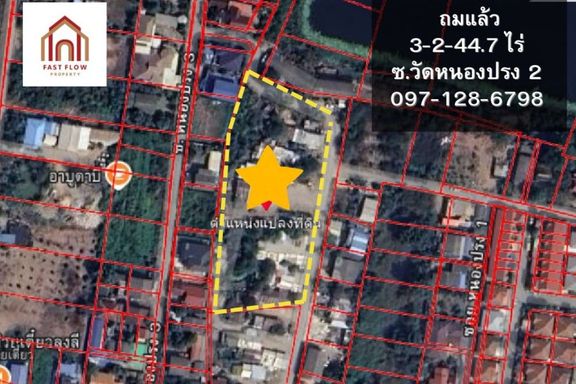 Land for sale, filled, Soi Wat Nong Prang 2, Mueang Pathum Thani, corner plot, 3 rai, 2 ngan, 44.7 square wah, PKA Interested, contact Ronaporn (Pook...