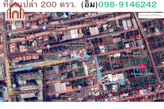 Land for sale 200 square wah, Soi On Nut 46 - Sukhumvit 103, width about 31 meters, depth about 26 meters Interested, contact Runyarat Fast Flow Prop...