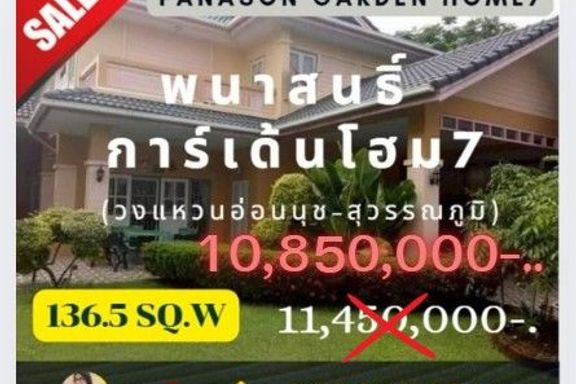 🏡 Panason Garden Home 7 (Onnut–Suvarnabhumi Ring Road) Luxury Detached House – Largest Plot in the Project • 📍 Prime Location | Only 10 Minutes from...