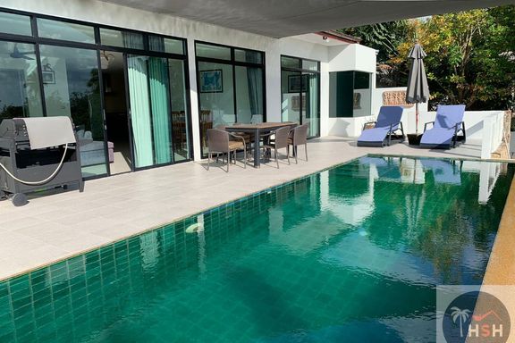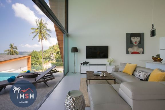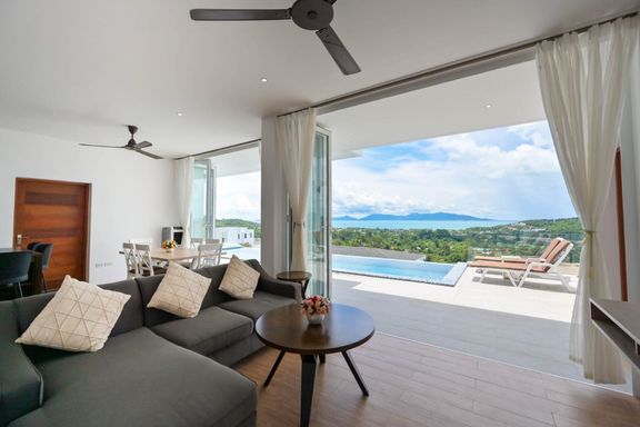 This 4 bedroom villa, that can easily be a 5 bedroom villa, is set on a hill side in Ao Por on the east coast of the island, boasting amazing panorami...