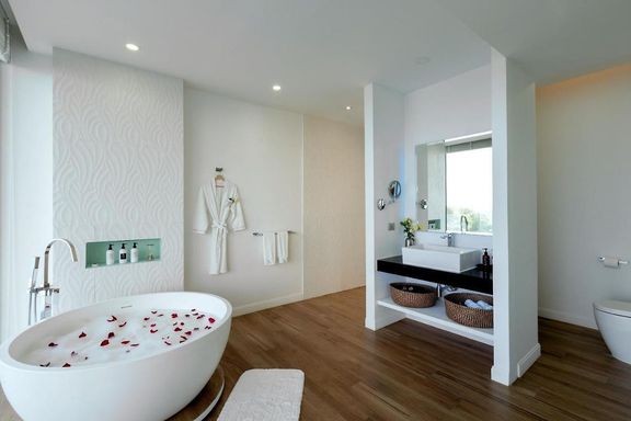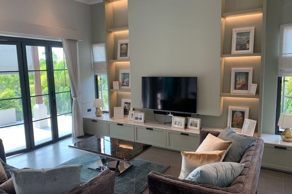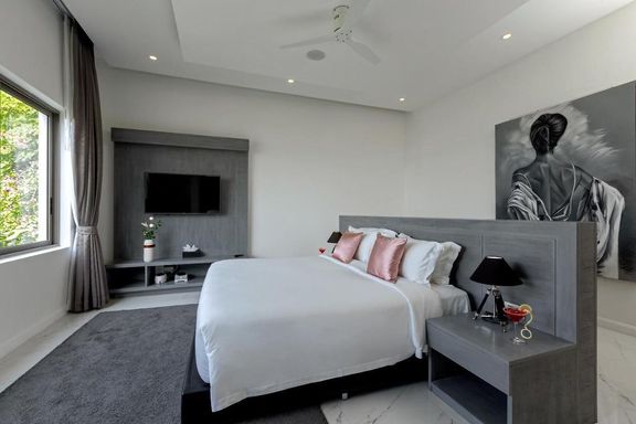 Overview The villa offers 3 bedrooms with ensuite bathrooms and is designed with modern style furnishings, taupe interiors, and floor-to-ceiling glas...