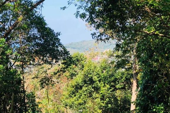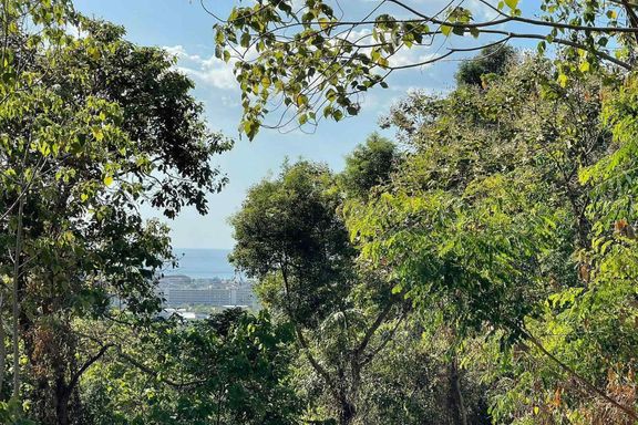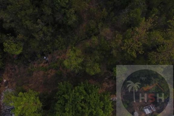 Partial sea view, mountain view, on the hillside in the jungle. Easy access, close to the road. 4km from the beach. 9.5 rai