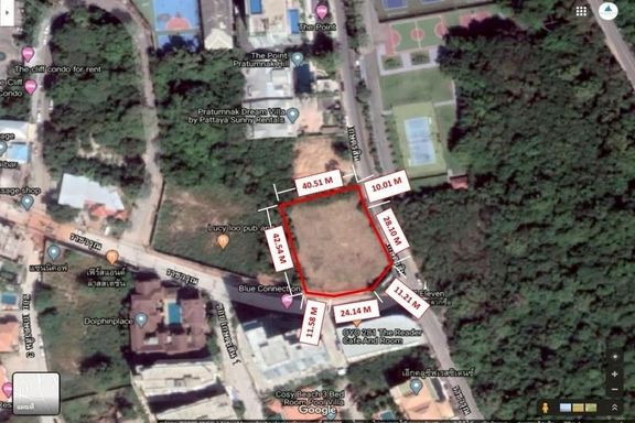 906171 Land for sale, 1 rai 52 sq.wa (452 ​​sq.wa) (1,808 sq.m.) Price: 99,000,000 THB Pratumnak Hill, Pattaya, Chonburi Located in the red zone of th...