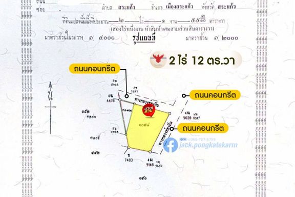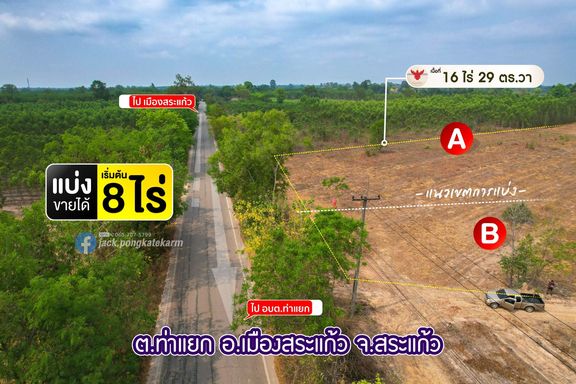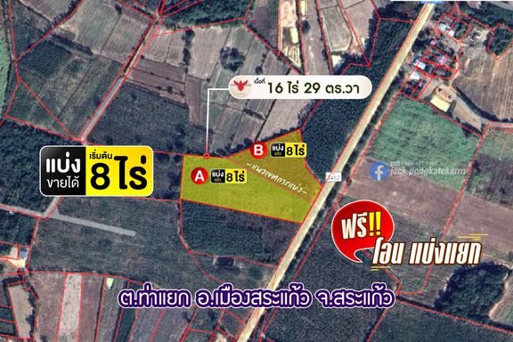 **For Sale by Owner – Prime Land Plot with Road Frontage (Freehold Title Deed)** 📍 *Located in Ban Thung Faek, Tha Yaek Subdistrict, Mueang Sa Kaeo...