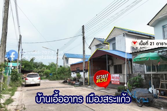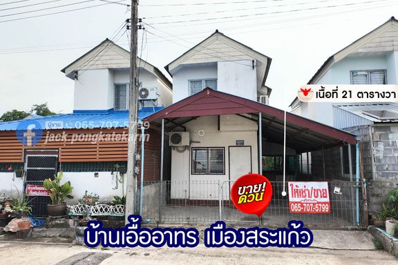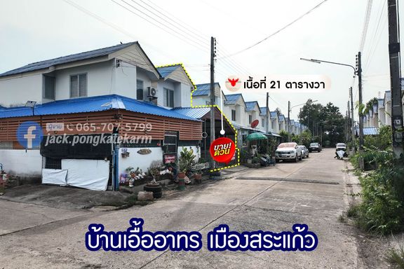 **Update!** Originally 980,000, now only 900,000—negotiable! For sale, a lovely 2-storey, 2-bedroom, 2-bathroom townhouse in Mueang Sa Kaeo Opposit...