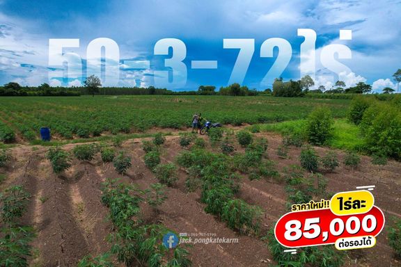Special price, Red Garuda title deed, beautiful plot of land, area 50-3-72 rai , currently planted 70% cassava, 30% eucalyptus, has 1 pond High h...