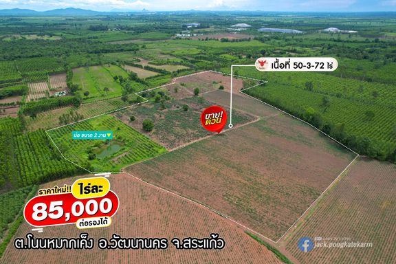 📣 **Beautiful Land Plot for Sale – Watthana Nakhon, Sa Kaeo** 🌳 Ideal for a **durian orchard** **For Sale:** 50 Rai of fertile land with **laterite...