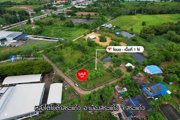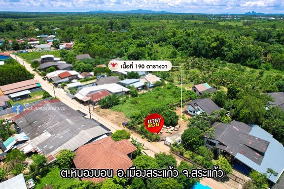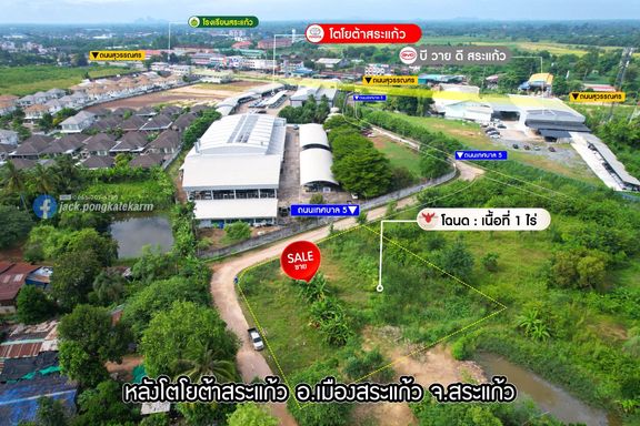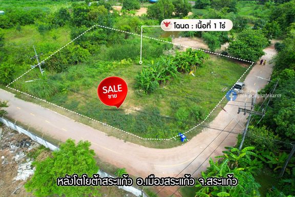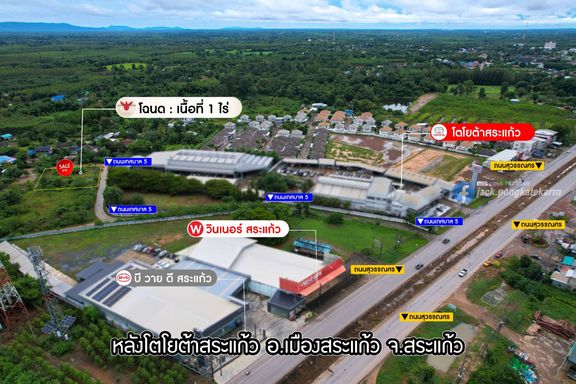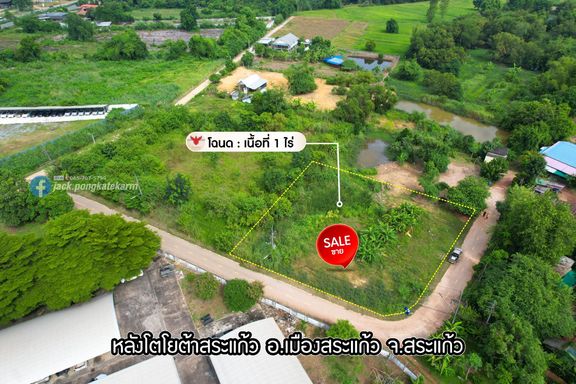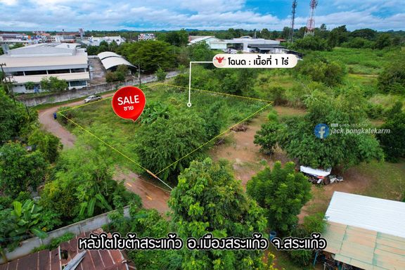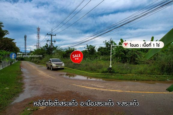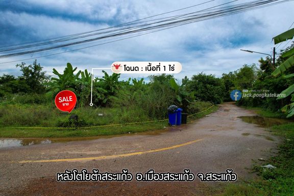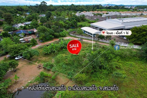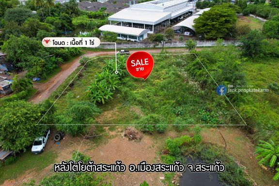 Land for sale, area 1 rai, in the municipality, behind #Toyota Sa Kaeo This plot is an empty land, residential location, 250 meters from Suwannason...