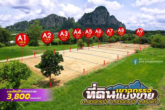 Land for Sale with Mountain View, Khao Chakan District, Sa Kaeo Province Beautifully shaped land plot with a long frontage along a concrete road. Lan...