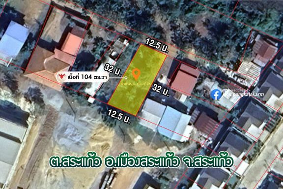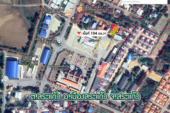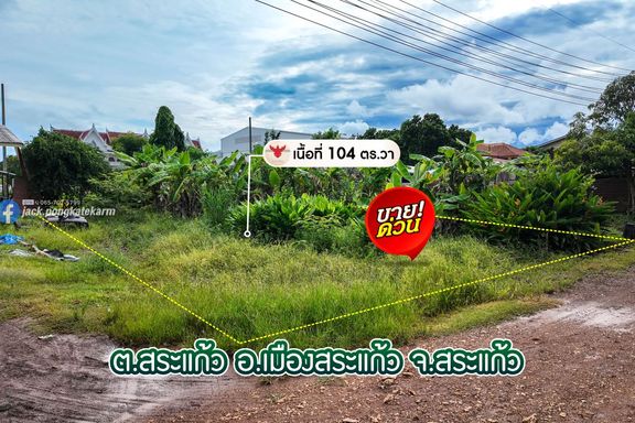 Land for Sale – Great Location in the Heart of Sa Kaeo City, Next to Sa Kaeo Municipality Office Land size: 104 sq. wah (approx. 416 sq. m) Price: 59...