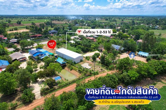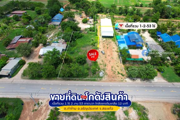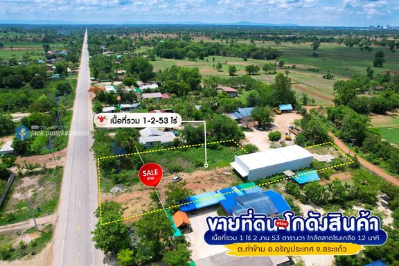 Update! Land for sale with warehouse for storing goods, land 1-2-53 rai, Ban Thod Charoen, Aranyaprathet ️This plot is next to the road on 2 sides,...