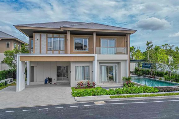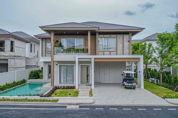 New luxury housing project located near the highway connecting Pattaya with Bangkok. The houses have modern design with 2 floors and luxurious interio...