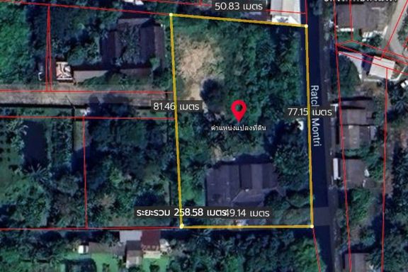 B67112: 2 rai, 2 ngan land for sale in Soi Petchkasem 64 💓 Price: 39,000,000 baht 💓 How many plots are there on the banks of the Ratchamontri Cana...