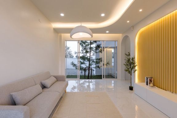 Newly built 2-storey detached house, modern–minimal design with a private inner garden Usable area: 180 sq.m. | 3 bedrooms, 3 bathrooms • Living room...