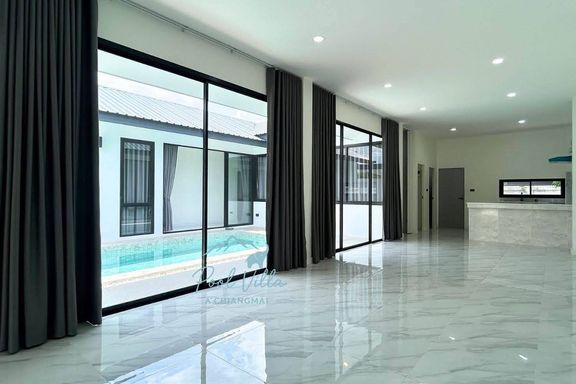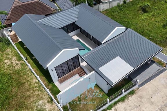 Pool villa for sale in Graceland Village, Chiang Mai. The only model home in the project, opposite Grace International School.