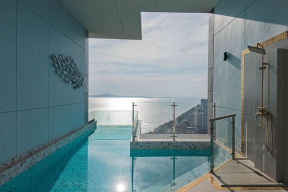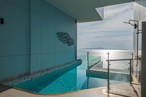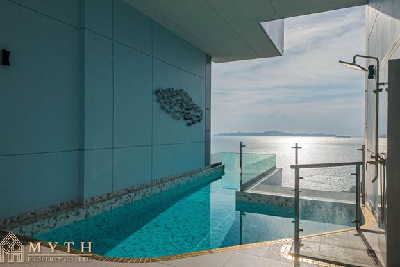Absolute rare unit in beach front project for sale. 1 spacious bedroom with private swimming pool facing the Pattaya side sea view with city lights -...