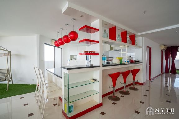 Impressive authentic designed 2 storey Penthouse is on the Jomtien Beach. First floor is spacious kitchen connected with living room and panoramic bal...