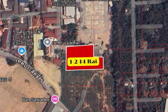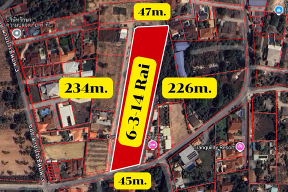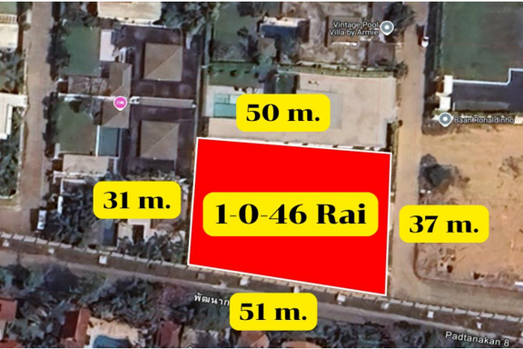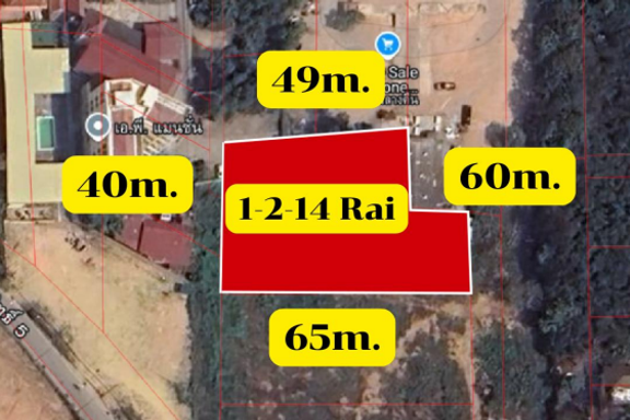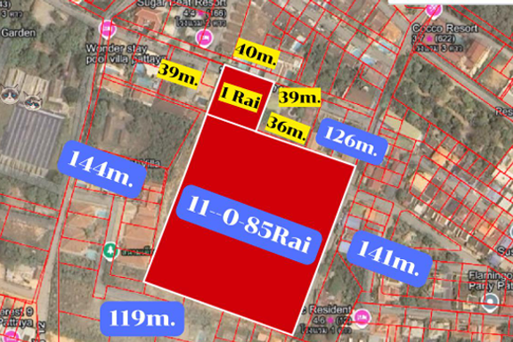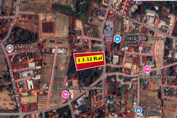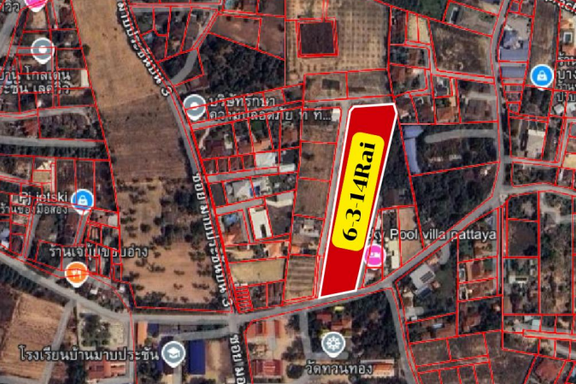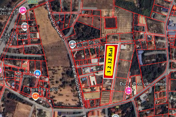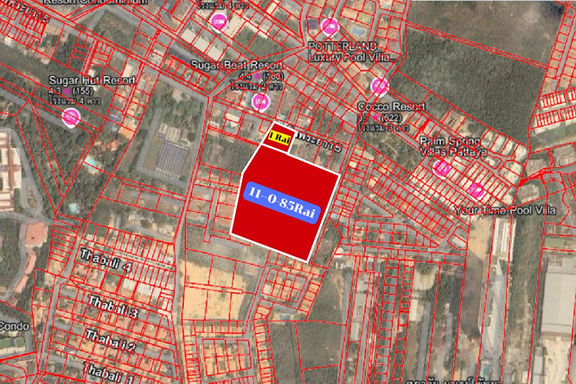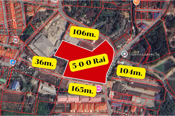 Land for Sale - Chaiyapruek, Pattaya Price: 400 Million Baht Land Size: 5 Rai 55 sq.w. (8,220 sq.m.) Price per Rai: 80 Million Baht Land Zoning: Red Z...