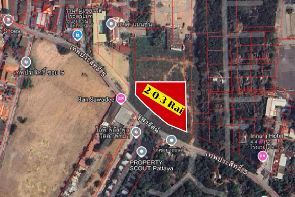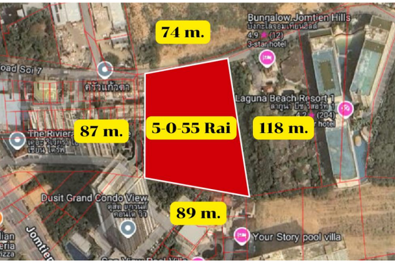 Land for Sale – Thepprasit Road, Pattaya Land size: 2 Rai 0 Ngan 3 Sq.wah (3,212 sq.m.) Price per Rai: 26,000,000 THB Total price: 52,000,000 THB Zoni...