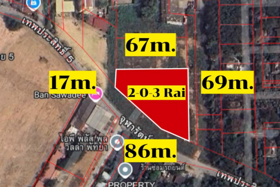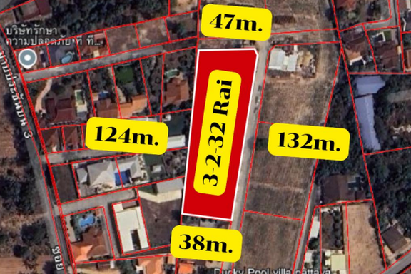 Land for Sale Location: Pong (Near Pong Motorway) Province: Chonburi Land Information Land Size: 2-2-61.9 Rai (4,247.6 sq.m) Zoning: Orange Zone Price...