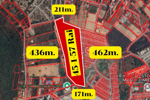 Land for Sale Size: 45 Rai 1 Ngan 57 Sq.wah (Total: 18,157 Sq.wah / 72,628 Sq.m.) Location: Si Racha, Chonburi Province Zoning: Red Zone (suitable f...