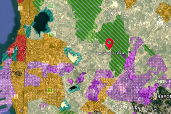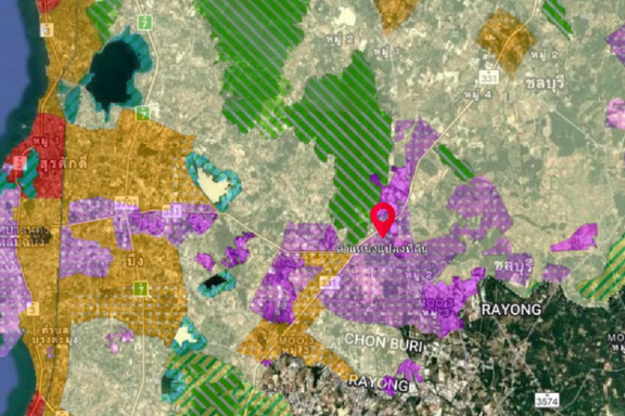 Land for Sale – Mabprachan (Pong), Chonburi Total Price: 3,200,000 THB Land Size: 0-2-46 Rai (984 sq.m.) Zoning: Orange Zone (Medium-Density Residenti...