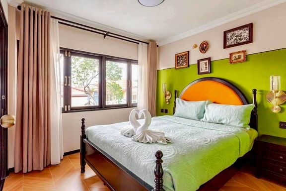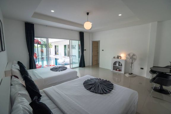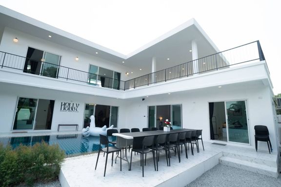 Holly House Poolvilla เป็นบ้านพักพูลวิลล่าสไตล์โมเดิร์นโทนสีขาว รายละเอียดบ้าน: จำนวนห้อง: 6 ห้องนอน 5 ห้องน้ำ สระว่ายน้ำส่วนตัว: ขนาด 4x10 เมตร คว...