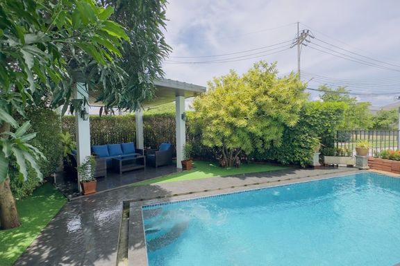 Single House for Sale – Nathikan Park View Price: 14.9 Million Baht House Details 4 Bedrooms, 6 Bathrooms 1 Walk-in Closet Land size: 150 Sq. Wah Usab...