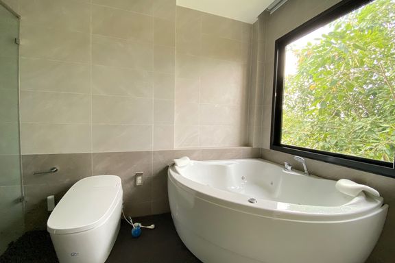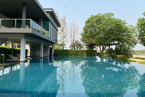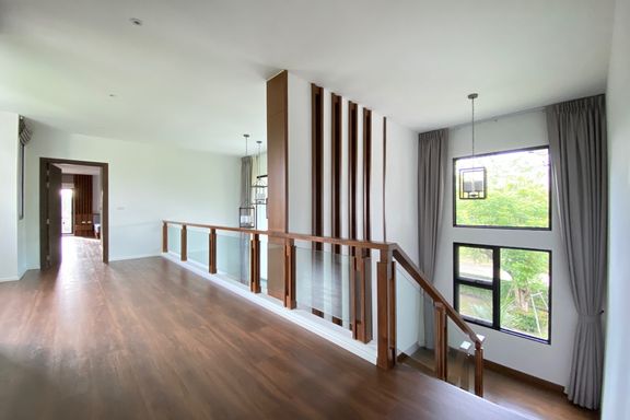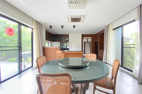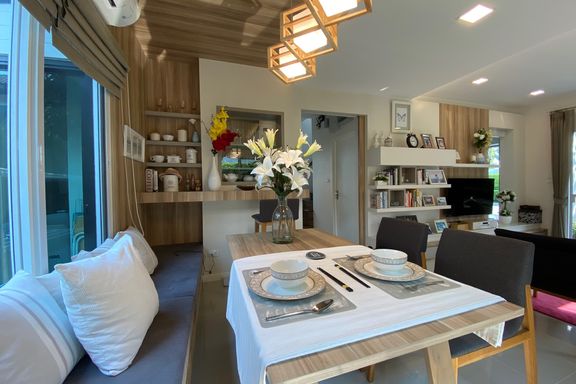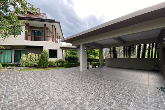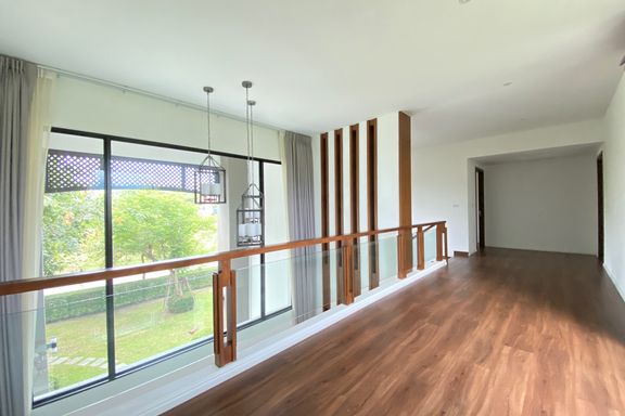 This beautiful 4-bedroom home is located in a gated estate with a golf course in Maerim, Chiang Mai. Fully furnished and set on a large plot, the prop...
