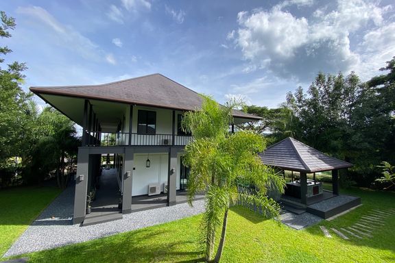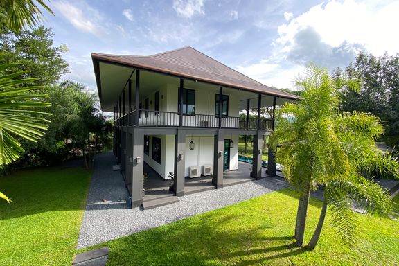 New modern Colonial-style house built to the highest standard for semi-furnished in a spectacular setting in Mae Rim area of Chiang Mai. The property...