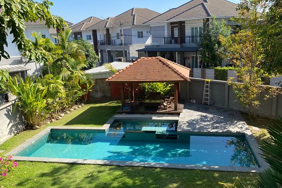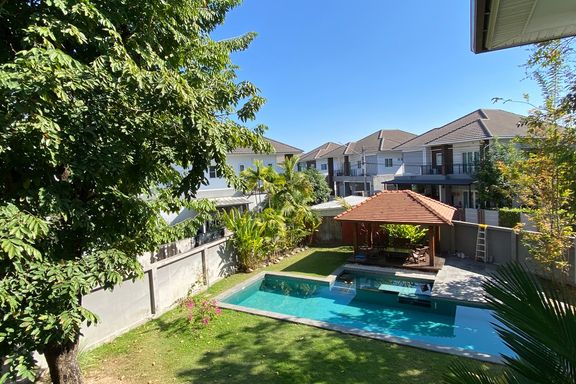 Spacious and well-maintained 5-bedroom family home with swimming pool for sale in a well-established gated community in Hang Dong area of Chiang Mai....