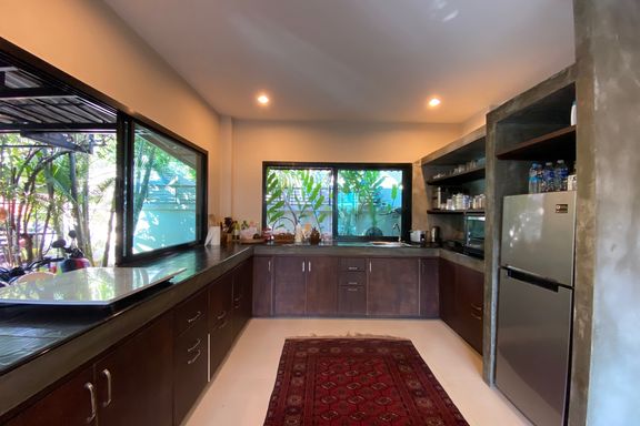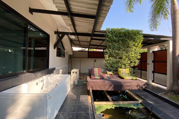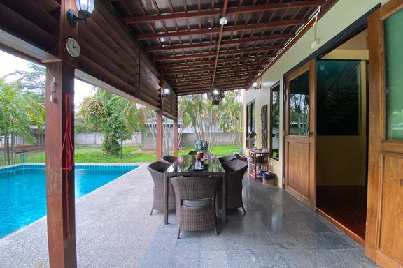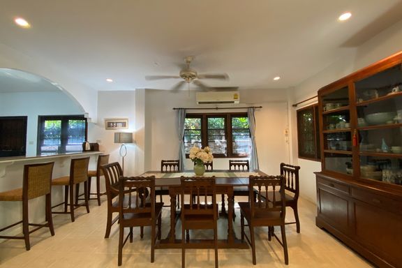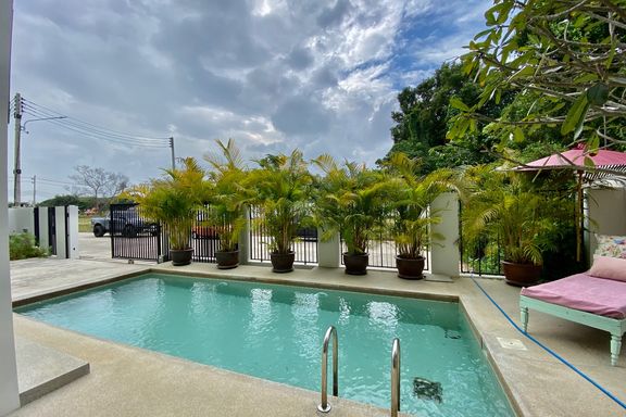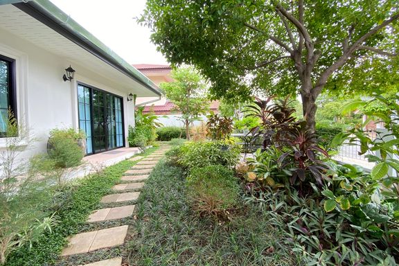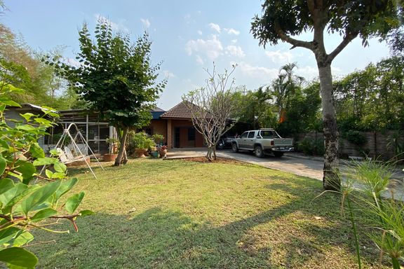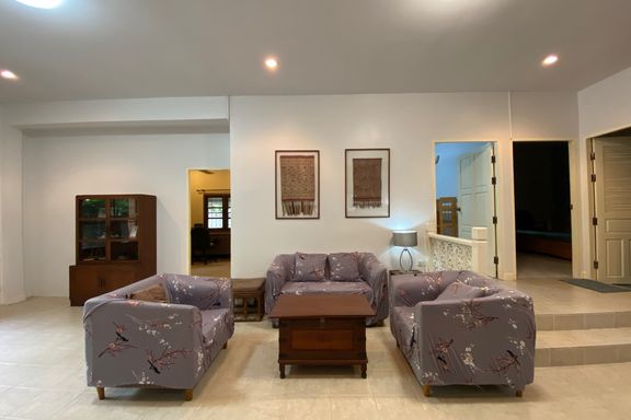 ** This house offers to sell with the tenant ** Lovely four-bedroom, one-storey family home with pool for rent or sale (partly furnished) in San Sai...