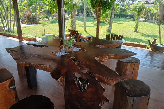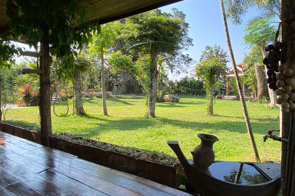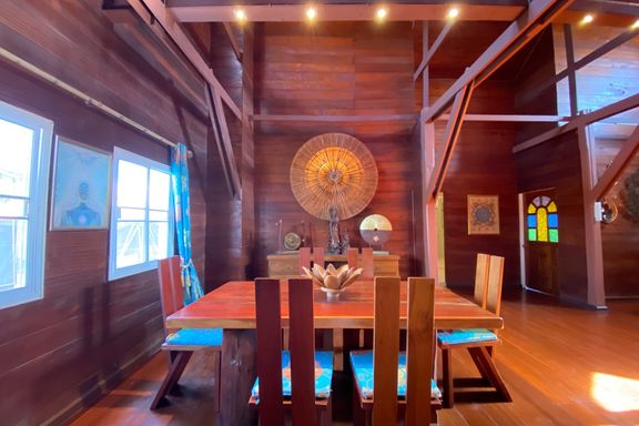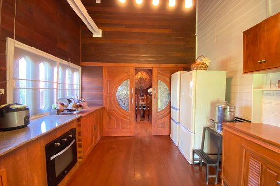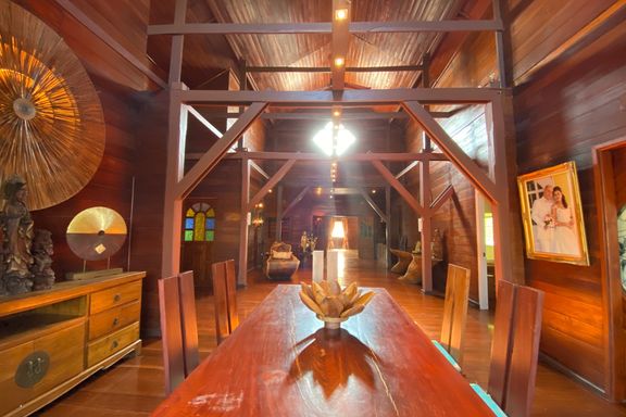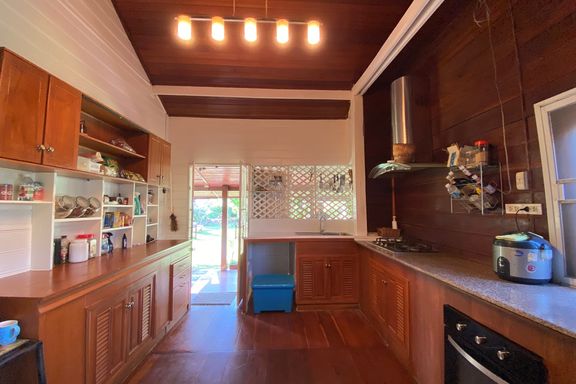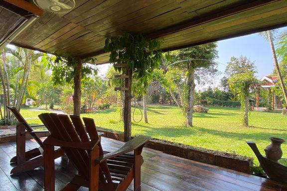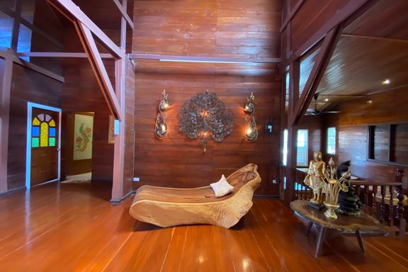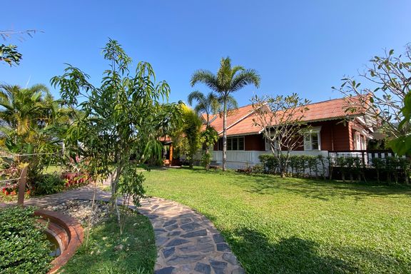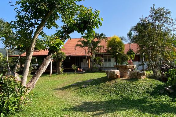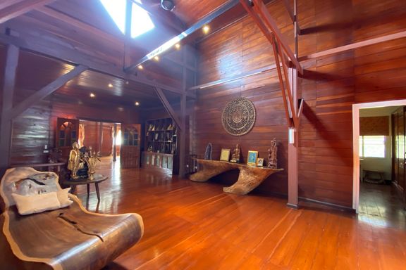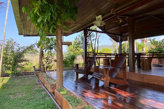 A beautiful renovated Lanna teak wood house on an impressive 4.25 rai of land bordering a National Park is for sale semi furnished in the Mae Taeng ar...