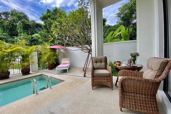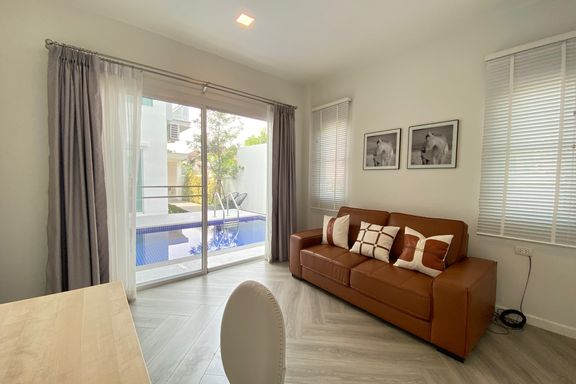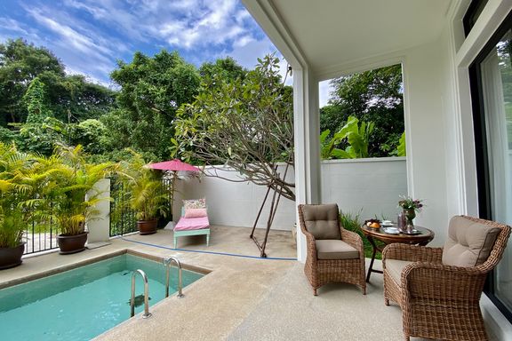 Luxurious and beautiful 3 bedroom pool villa for sale fully furnished in a unique Mediterranean style residence. The unit is in a beautiful contempor...