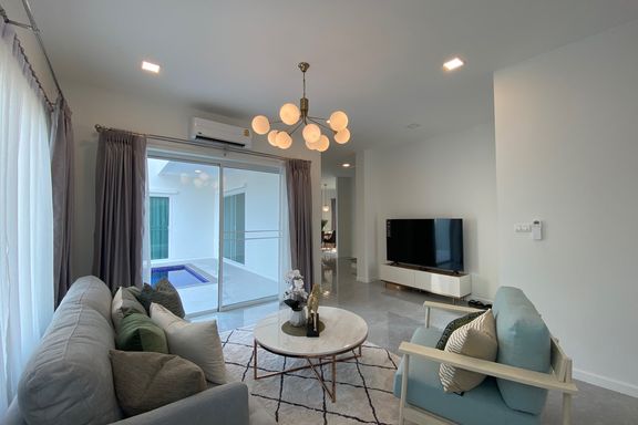 Brand new renovated modern style 3 bedroom pool villa for sale fully furnished in a reputable gated estate in Hang Dong area near Kad Farang, Chiang M...