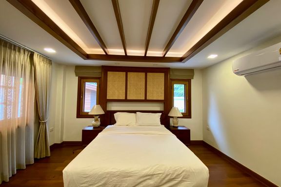 This beautifully maintained and fully furnished 3-bedroom home is set on a peaceful hillside in Mae Rim, offering breathtaking views of Doi Suthep and...