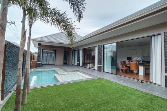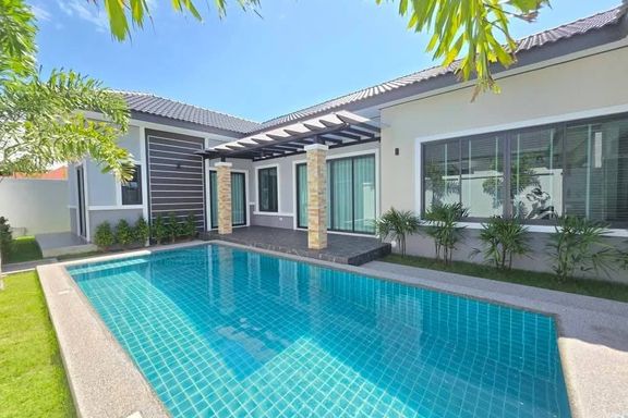 💥 High Privacy Wall ✅ Every detail perfectly designed 🏡 Brand New Luxury Pool Villa — Move in today! 📍 Prime location! Only 300 meters from Mabpra...