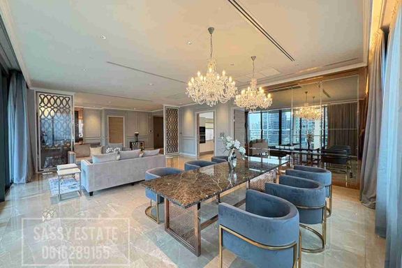 For sale or rent, The Residences at Sindhorn Kempinski Hotel Bangkok Condominium, nice room, high floor, combined unit, extended space. size 355.73 s...