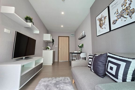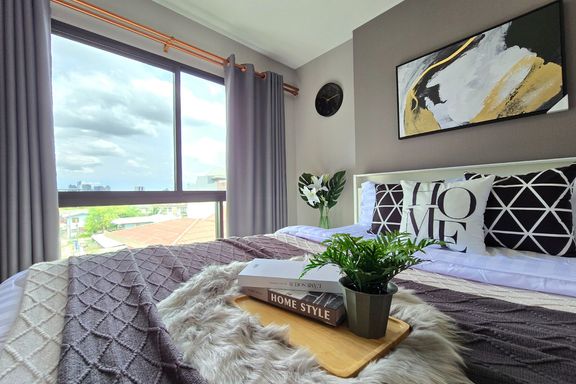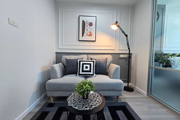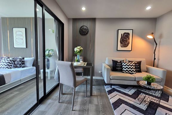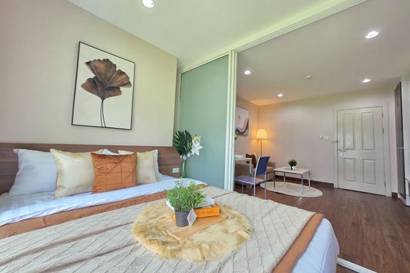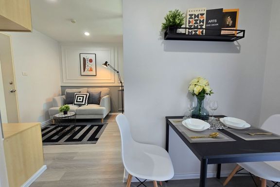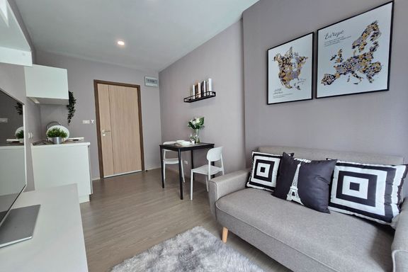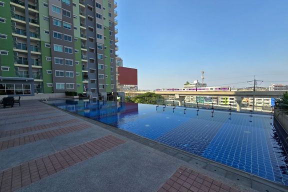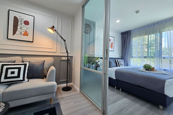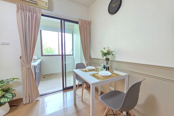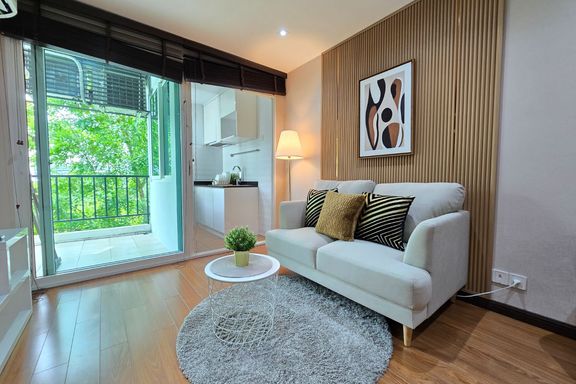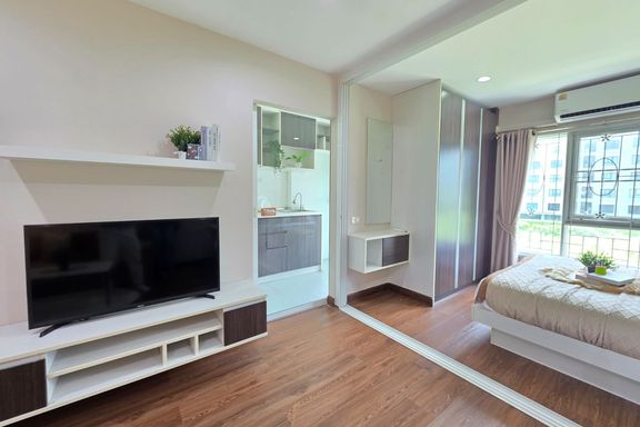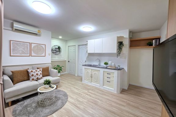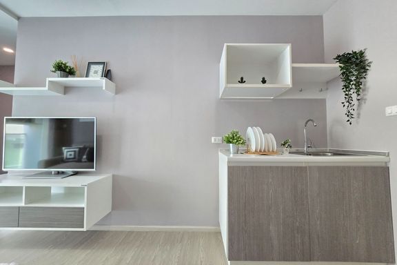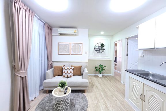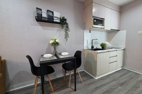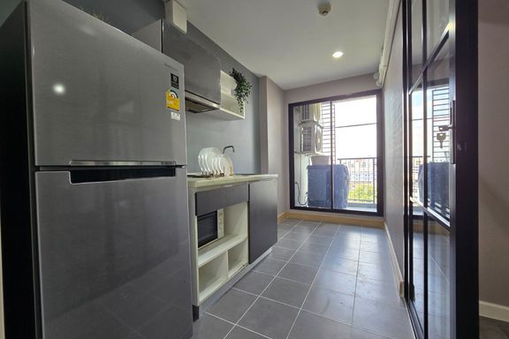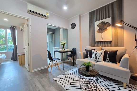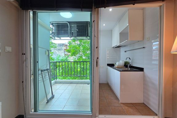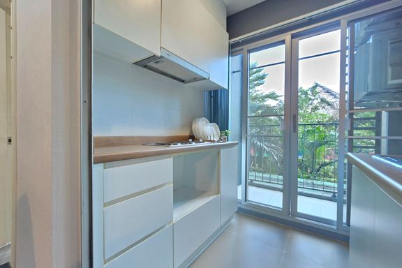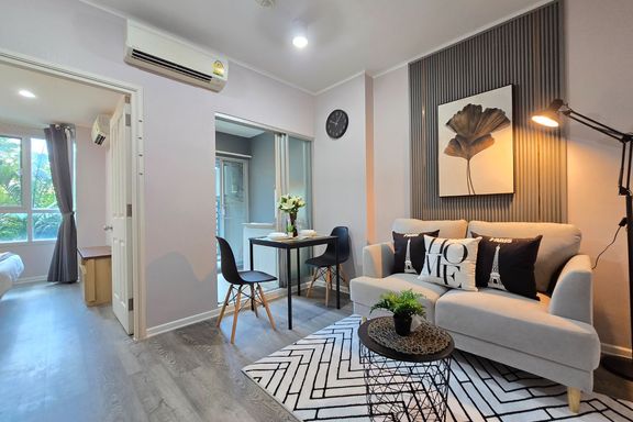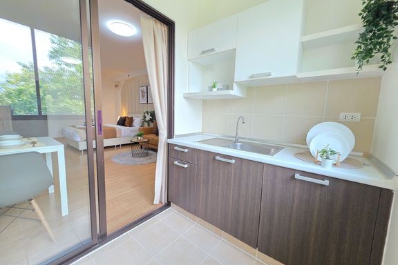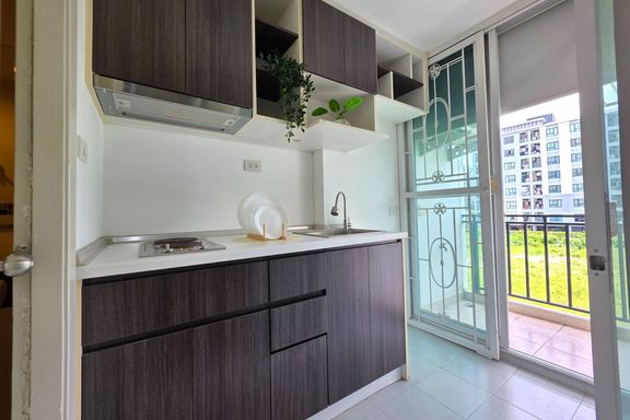 SF135 For sale: The Niche Mono Bangna, Building C. Spacious and airy view, pleasing to the eye 👀 and calming to the mind ❤️ ....Separate kitchen area...