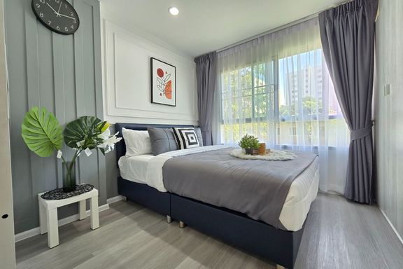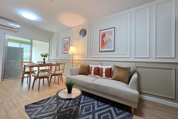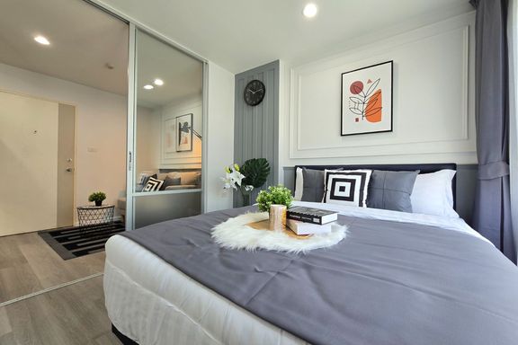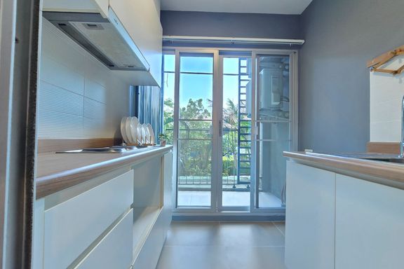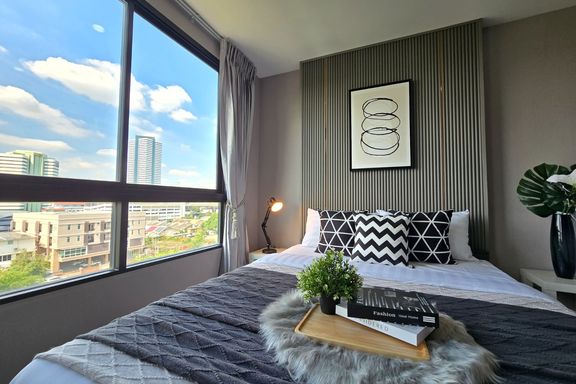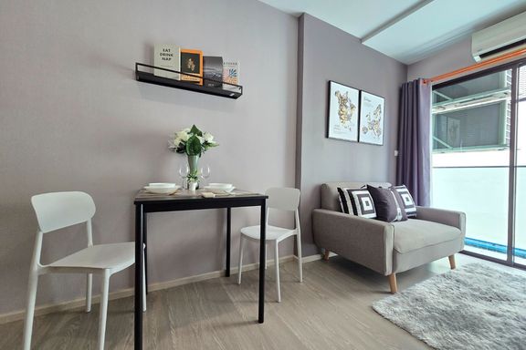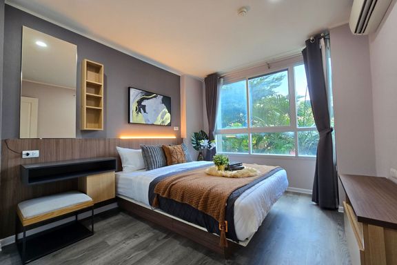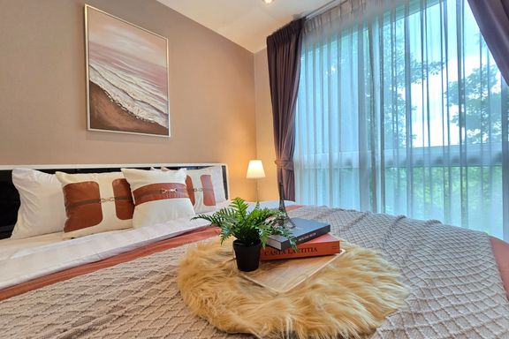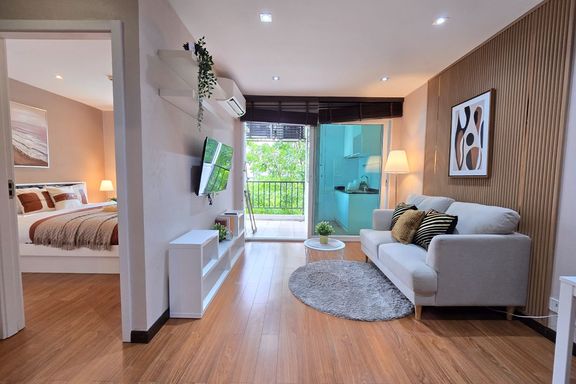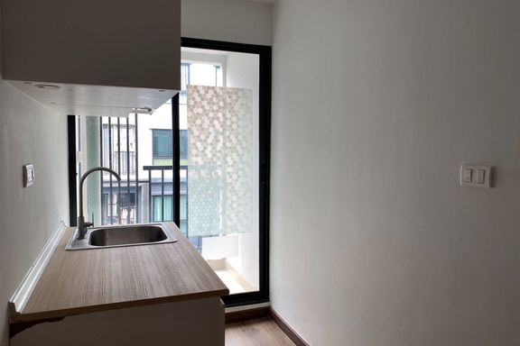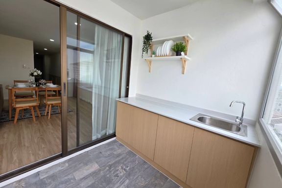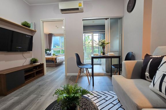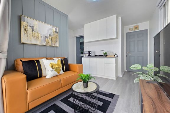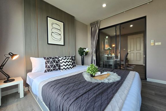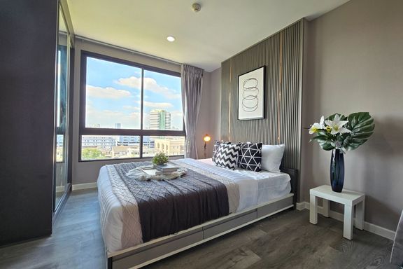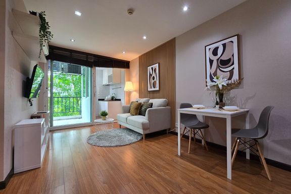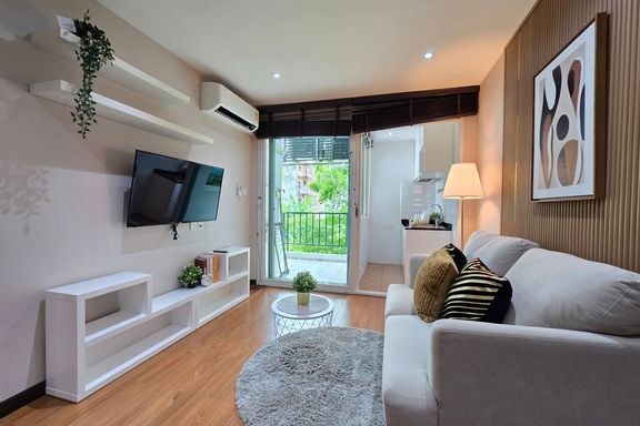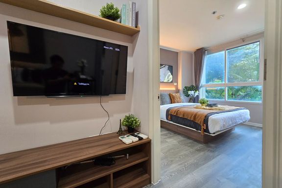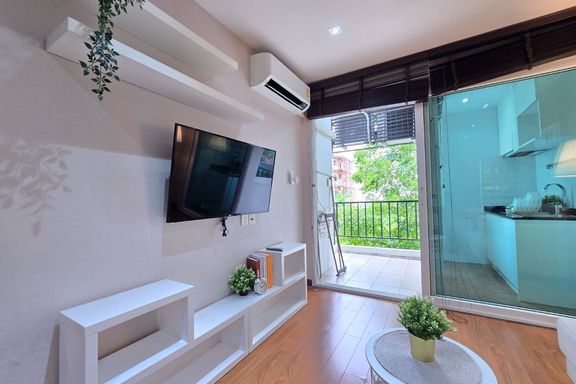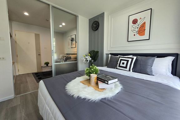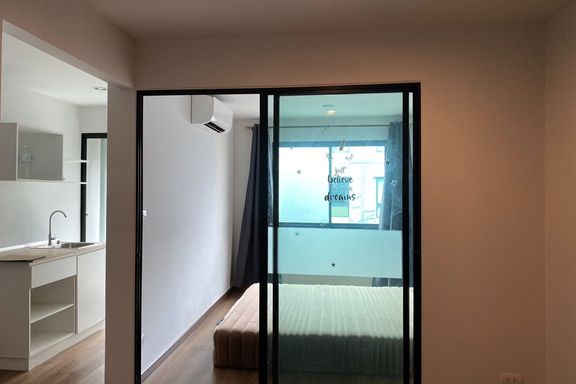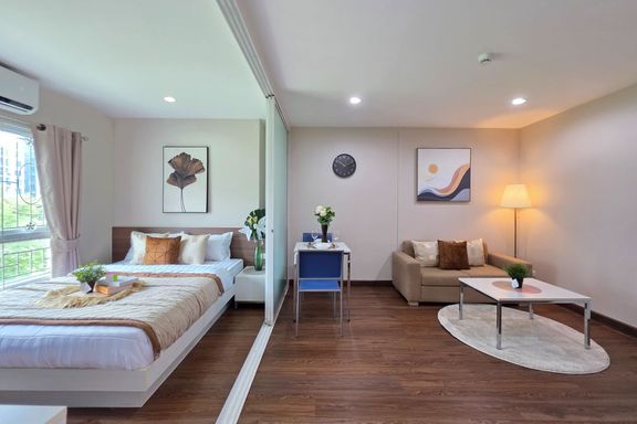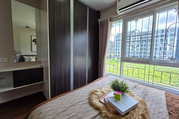 SF135 For sale: The Niche Mono Bangna, Building C. Spacious and airy view, pleasing to the eye 👀 and calming to the mind ❤️ ....Separate kitchen area...