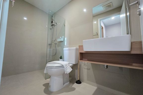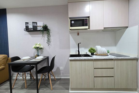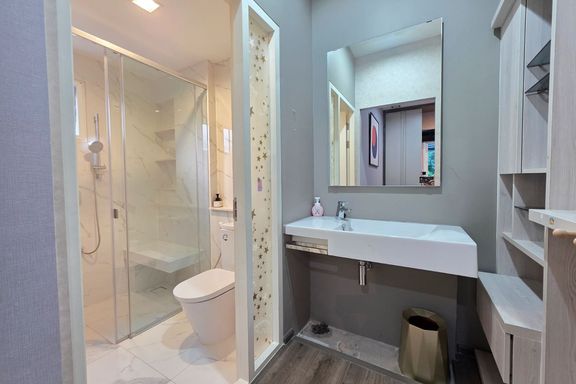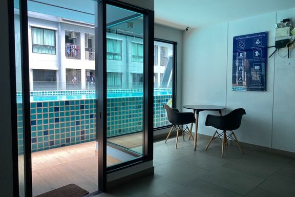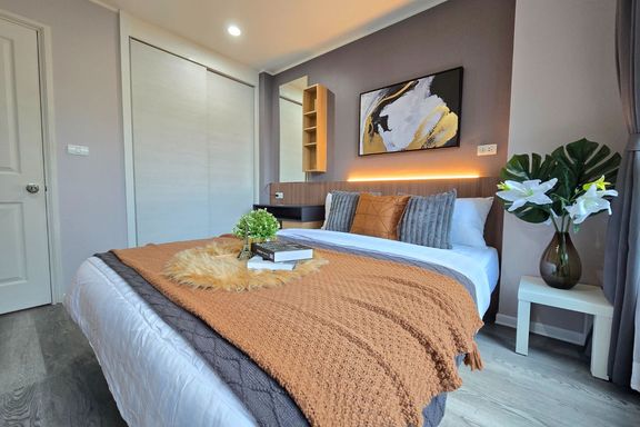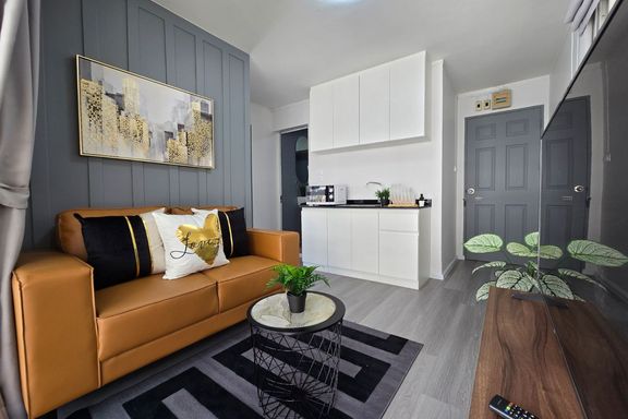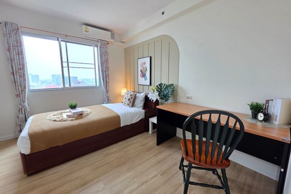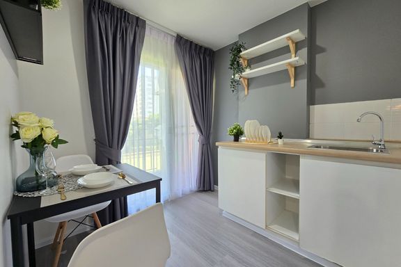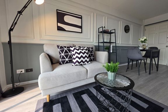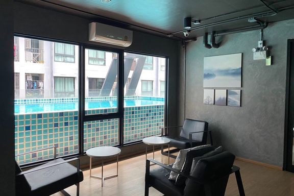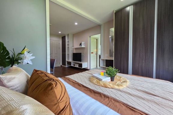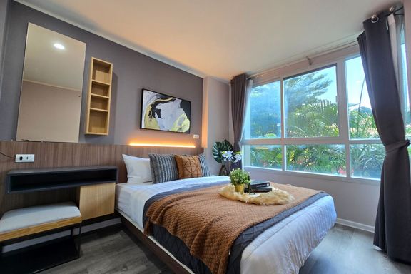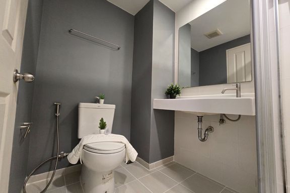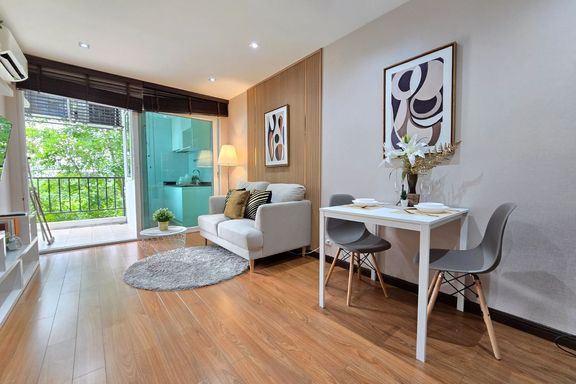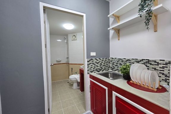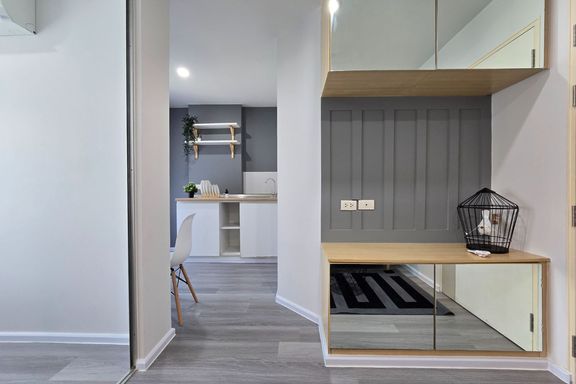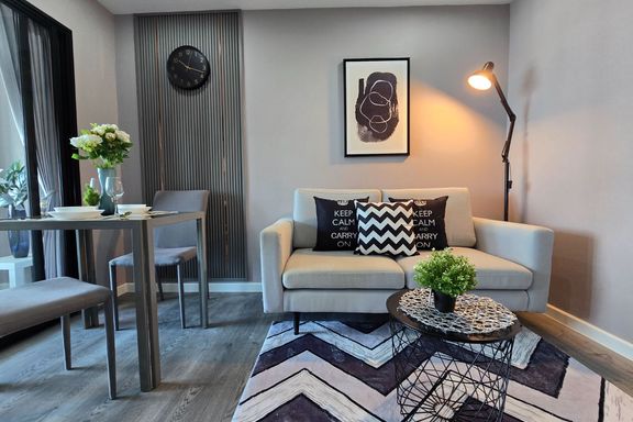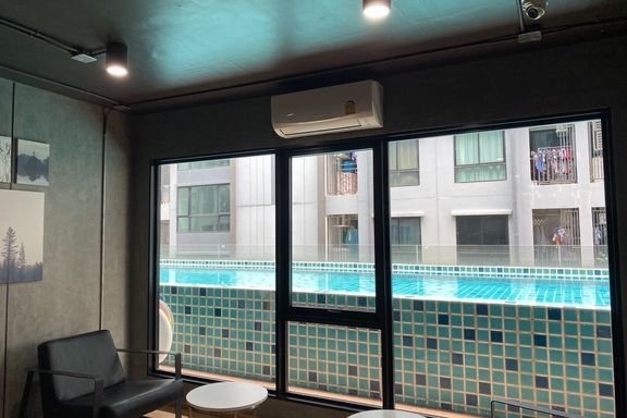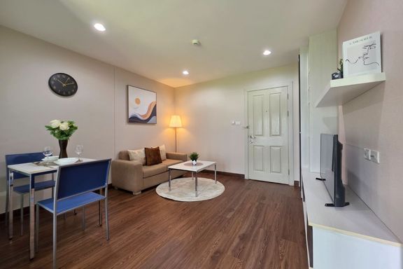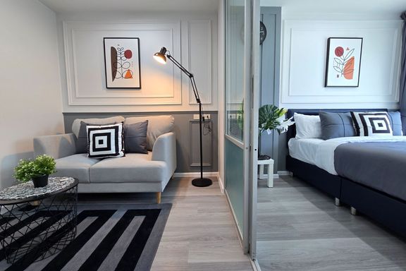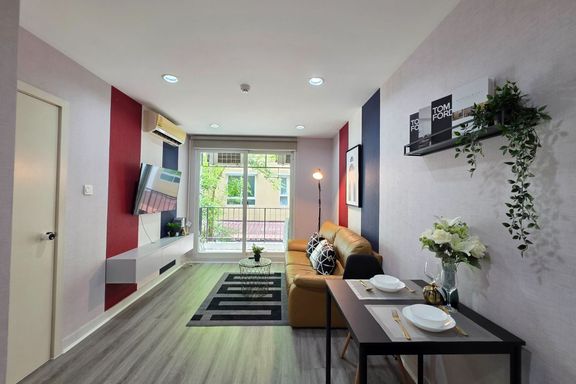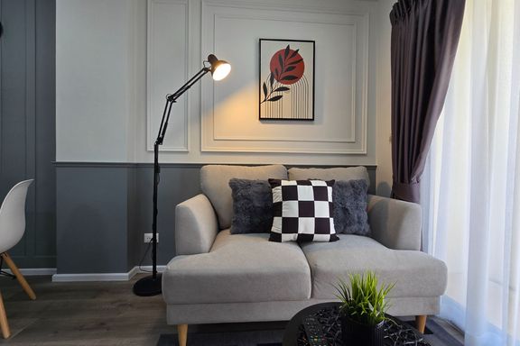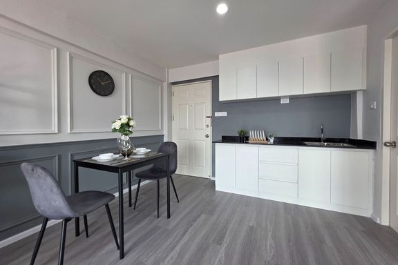 SF135 For sale: The Niche Mono Bangna, Building C. Spacious and airy view, pleasing to the eye 👀 and calming to the mind ❤️ ....Separate kitchen area...