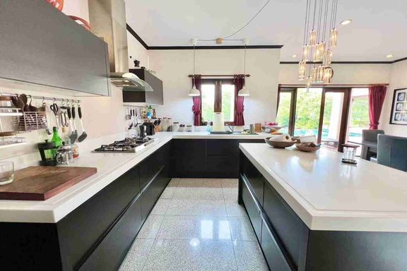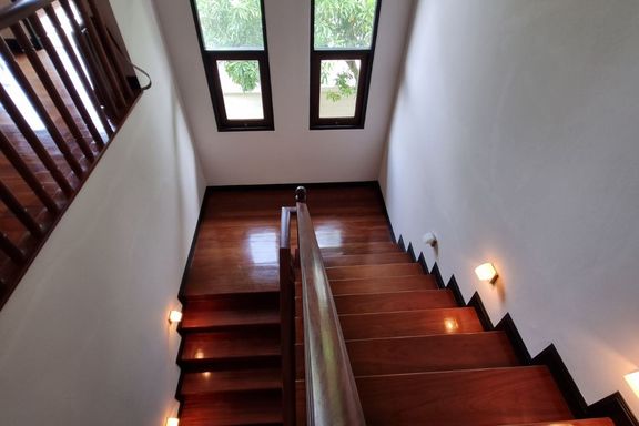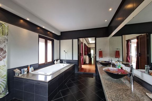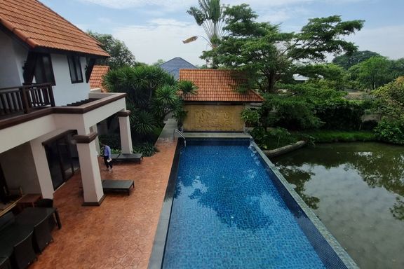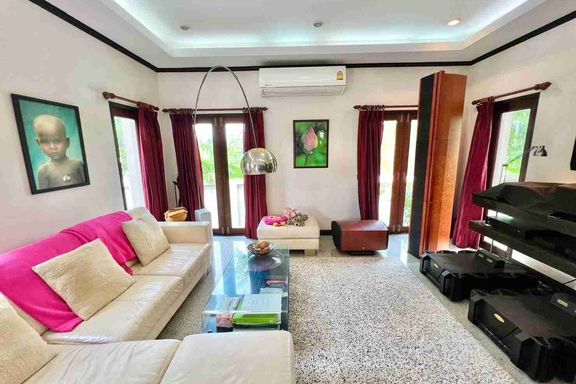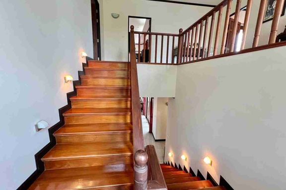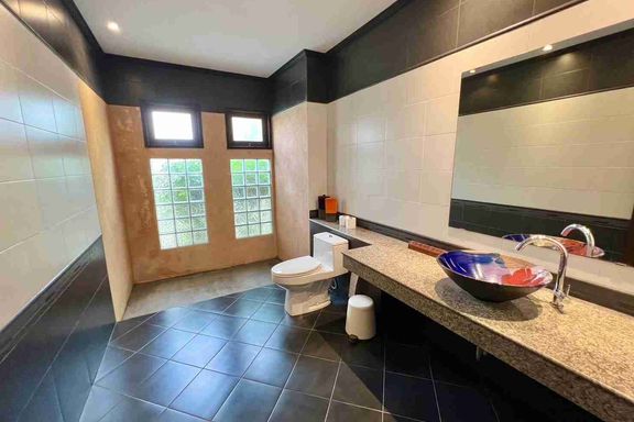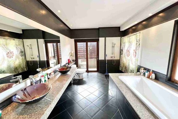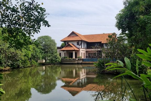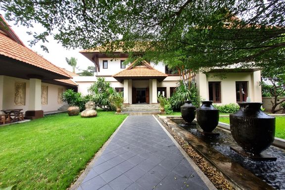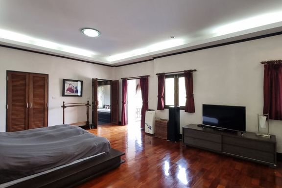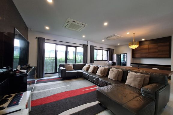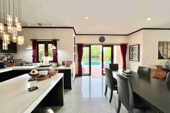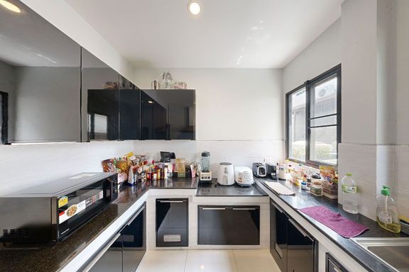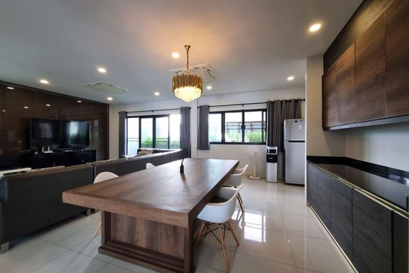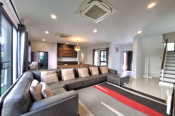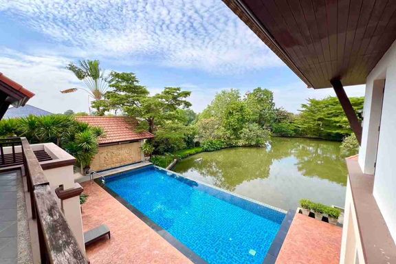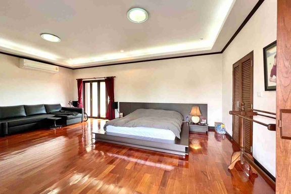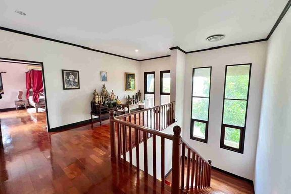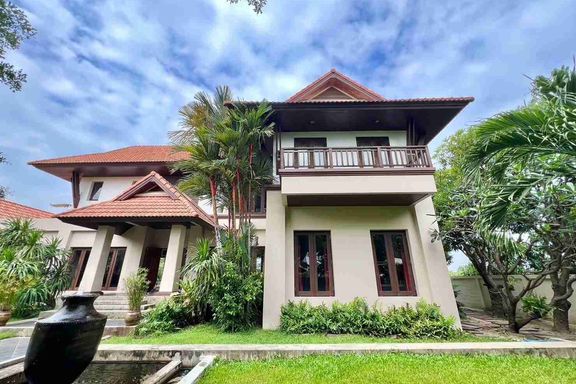 Thai modern style, near a canal. Age: approx. 16 y.o. Usable area of the house 600 m2 Interior facilities: 4 bedrooms, 5 bathrooms 2 kitchens (1...