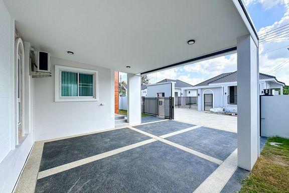 Listing ID: C907 New Modern 3 Bed House at Hang Dong for Sale Land size: 38 Sq.wah (152 Sq.m) Living space: 142 Sq.m - 3 bedrooms - 3 bathrooms - L...